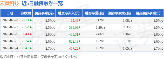 本站音书,放手2025年2月28日收盘,宏微科技(688711)报收于17.73元,下落6.73%,换手率2.52%,成交量5.35万手,成交额9721.41万元。